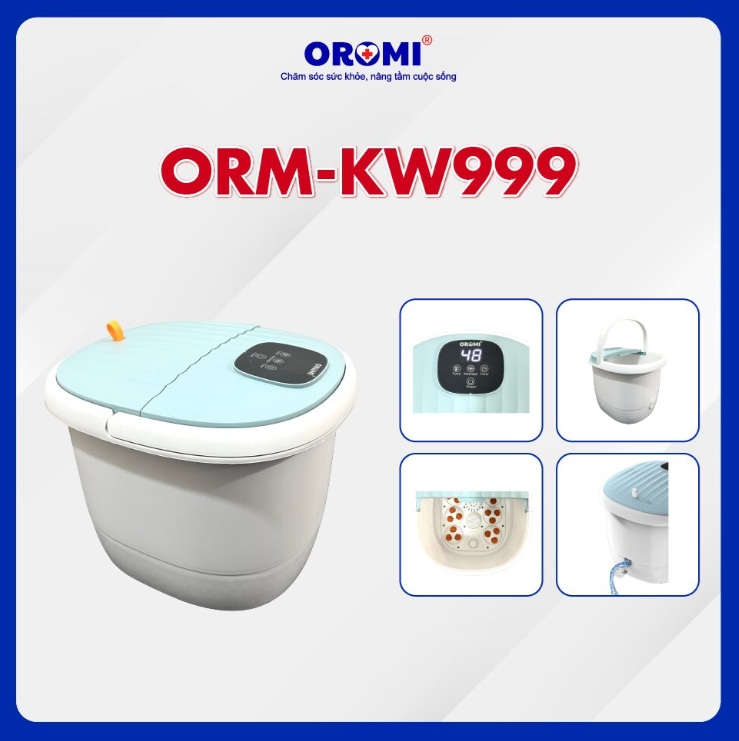 Bồn ngâm chân massage OROMI ORM-KW999 được sản xuất theo công nghệ Nhật Bản. Sản phẩm sử dụng phương pháp massage thủy nhiệt hỗ trợ rất tốt trong việc hỗ trợ các bệnh liên quan đến cơ xương khớp. Ngoài ra, việc xoa bóp có thể giúp thư giãn đôi bàn chân, thúc đẩy quá trình lưu thông khí huyết, giảm tê bì chân tay, xua tan mệt mỏi, căng thẳng, mang lại giấc ngủ ngon và sâu hơn, trị các bệnh ngoài da khử mùi hôi chân, đào thải độc tố trong cơ thể.