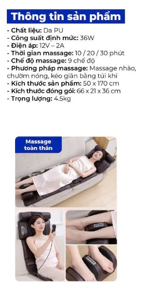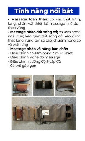 - Massage toàn thân: cổ, vai, thắt lưng, lưng, chân với thiết kế massage theo vùng