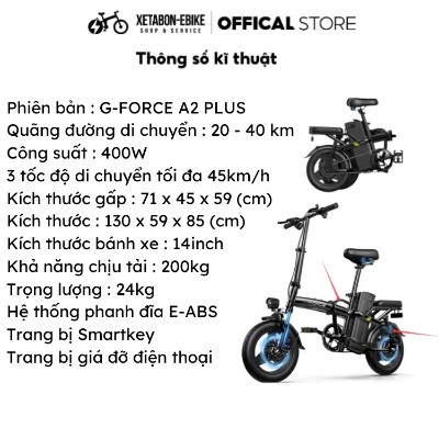 Xe đạp điện trợ lực G-FORCE A2 PLUS mới gấp gọn bỏ cốp xe tay ga dành cho người lớn học sinh sinh viên được thiết kế nhỏ gọn, trang bị nhưng công nghệ hiện đại có thể đem lại những trải nghiệm tuyệt vời khi lái xe.