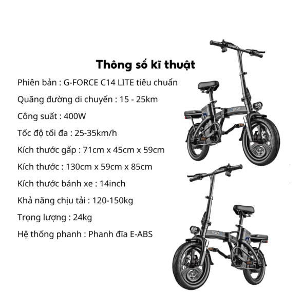 Xe đạp điện gấp gọn G-FORCE thương hiệu Mỹ, công nghệ Mỹ gồm 2 phiên bản: