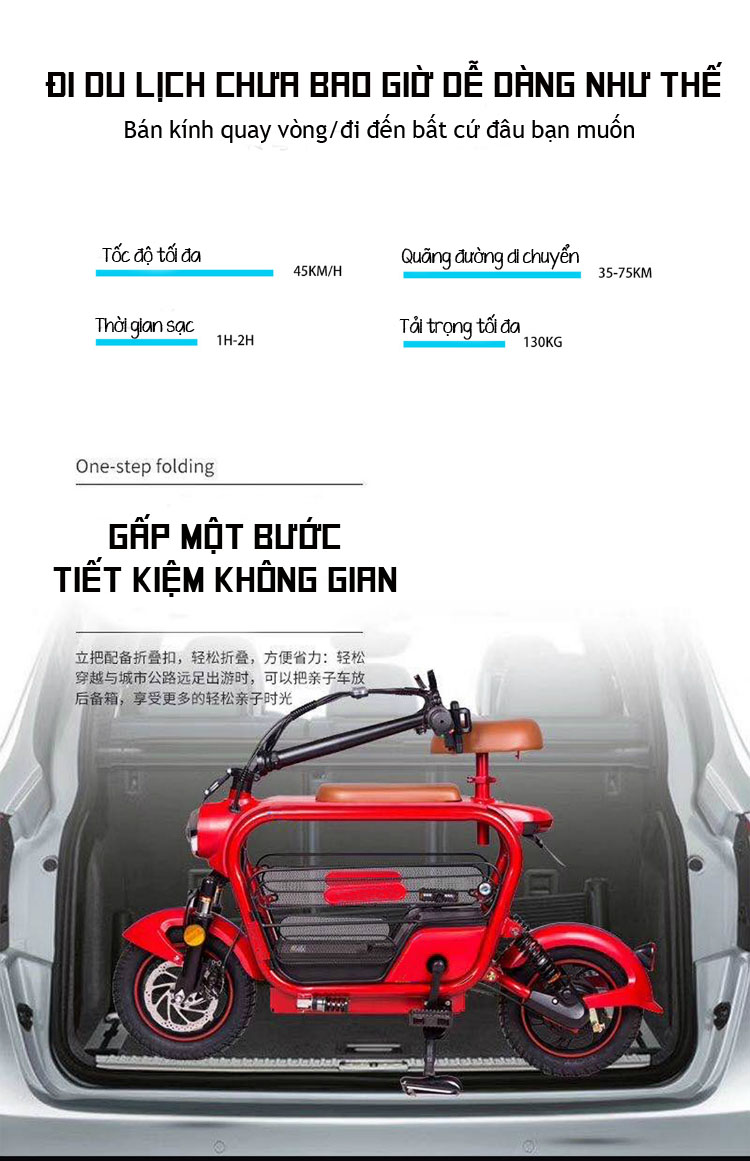 Thân xe thiết kế hình thang ngược cực kì đáng yêu, là dòng xe sở hữu cốp lớn và độc đáo nhất trong các dòng xe điện mini cao cấp hiện nay.